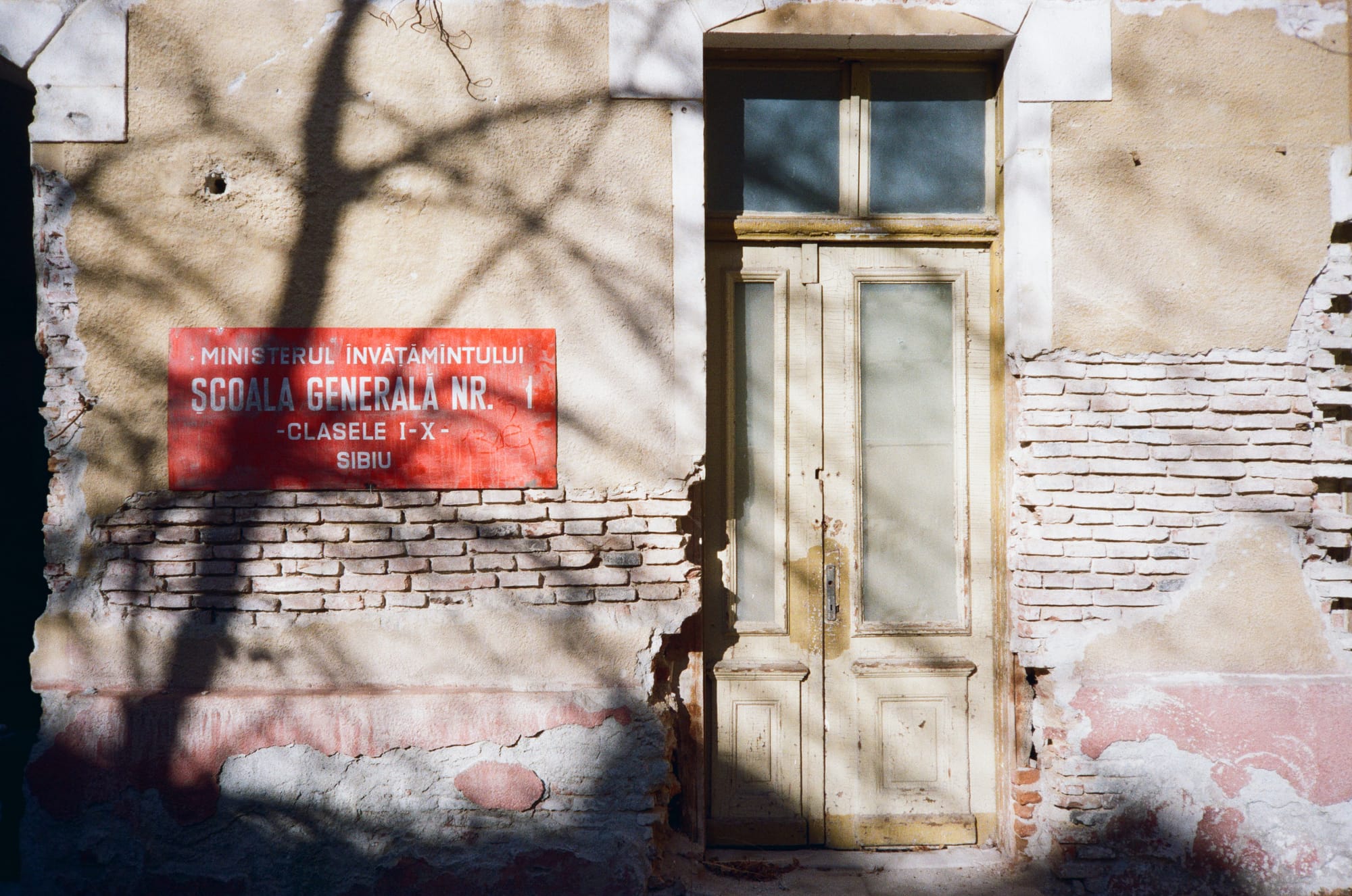 I leave the antiquarian and walk up to the Ursulines Convent (Ursulinenkloster), where I spent my early school years. Nora Iuga, from a generation long before mine, once sat on these same benches as the Second World War was taking Europe by storm. Passing by, I am haunted by her love letters to Sibiu. I reflect on her suffering from a love that never reached the depth she yearned for. Months ago, I gifted Sexagenara și tânărul (Die Sechzigjährige und der junge Mann) to a friend – the only edition in German I found. I'm still waiting for his review (update: he hates it). Now, the school of our shared past lies in ruin. Shattered windows. Bolted doors. Extinguished lights. The inner courtyard, overgrown with vegetation, leaves no trace of the former school, except for the Salve inscribed above the entrance.